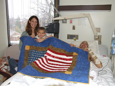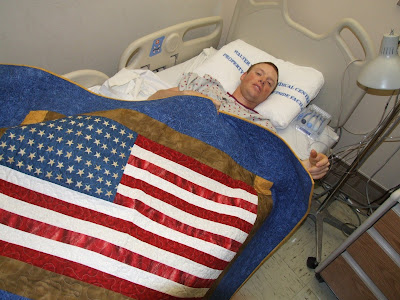 Linda is a woman in the DC area that makes flag quilts each year for the wounded solders at Walter Reed Hospital. She along with other volunteers make about 100 quilts a year and then deliver 23-30 quilts at a time to the wounded soldiers at Walter Reed for Christmas, Memorial Day, July 4th and Veteran's Day. The quilts are backed in muslin so that those who made it can write notes to the solder.